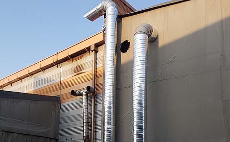 "아파트,연립주택,여관,옥상배기 벤추레이다제작설치, 정화조(화장실),악취,배기, 배출장치,일반주택,주방 악취습기, 환기배출장치 공장의 분진, 배연,열기,악취,배출장치, 식당의주방및 방과훌 , 고기굽는 연기, 냄새 배기닥트설치, 대형 상가 사무실냉.난방 보온닥트 및 환기닥트공사 " –통일공조닥트